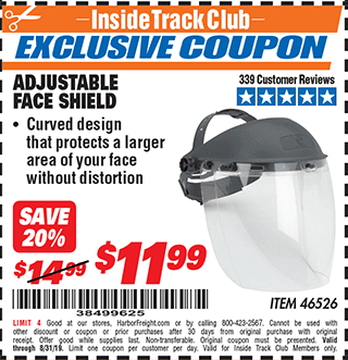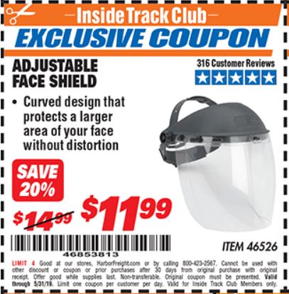 ITC ADJUSTABLE FACE SHIELD Lot No. 46526 Expired: 5/31/19 - $11.99 Coupon Code: '46853813'