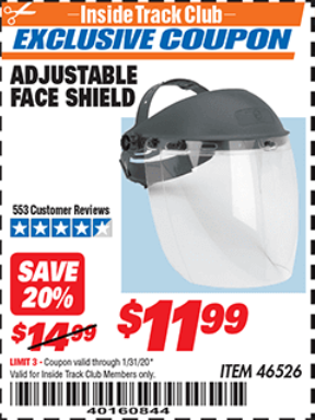 ITC ADJUSTABLE FACE SHIELD Lot No. 46526 Expired: 1/31/20 - $11.99 Coupon Code: '40160844'