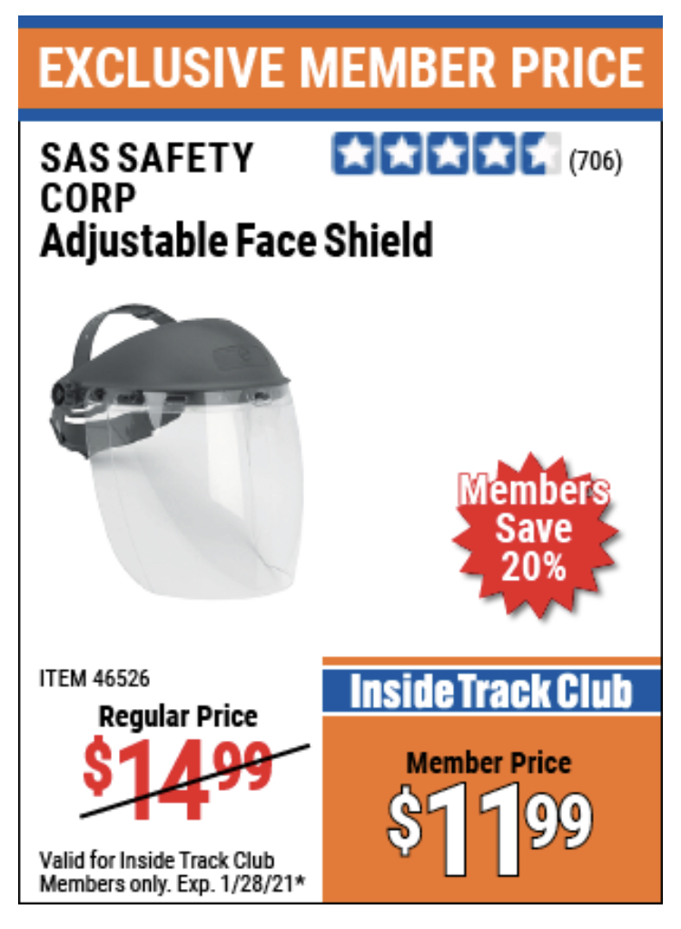 ITC ADJUSTABLE FACE SHIELD Lot No. 46526 Expired: 1/28/21 - $11.99 Coupon Code: 'n/a'