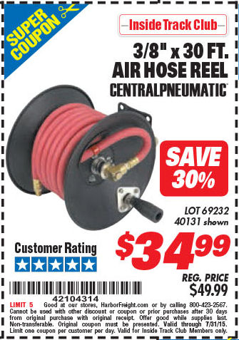 ITC AIR HOSE REEL WITH 3/8" x 30 FT. HOSE Lot No. 69232/40131 Expired: 7/31/15 - $34.99 Coupon Code: '42104314'