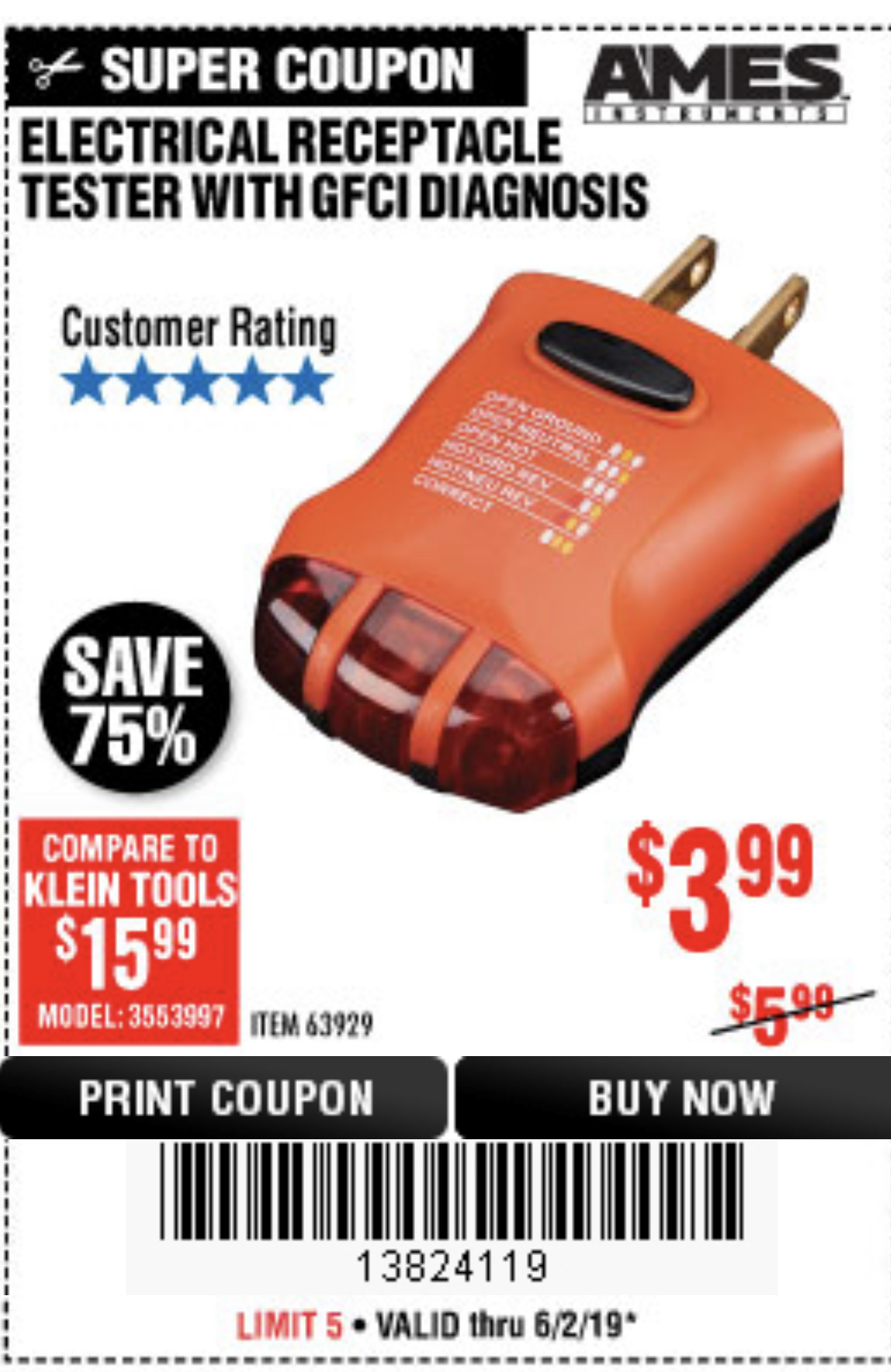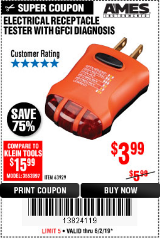 AMES INSTRUMENTS NON-CONTACT VOLTAGE TESTER Lot No. 63919 Expired: 2/29/20 - $3.99 Coupon Code: '40364740'
