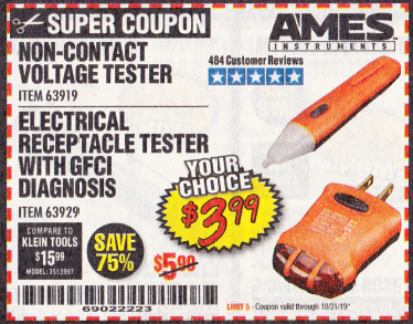 AMES INSTRUMENTS NON-CONTACT VOLTAGE TESTER Lot No. 63919 Expired: 10/31/19 - $3.99 Coupon Code: '69022223'