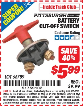 ITC BATTERY CUT-OFF SWITCH Lot No. 66789 Expired: 2/28/15 - $5.99 Coupon Code: '51759102'