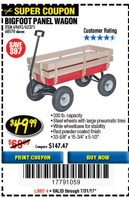 BIGFOOT PANEL WAGON Lot No. 60570/69693/62375 Expired: 7/31/17 - $49.99 Coupon Code: '17791059'