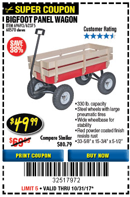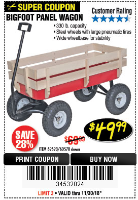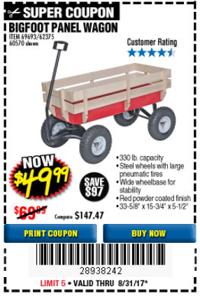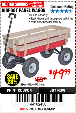 BIGFOOT PANEL WAGON Lot No. 60570/69693/62375 Expired: 1/31/18 - $49.99 Coupon Code: '30586354'