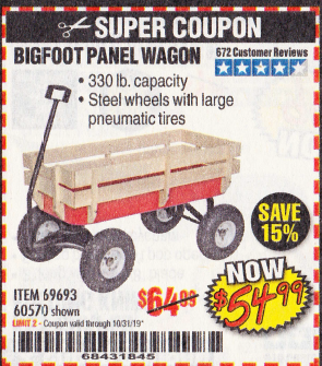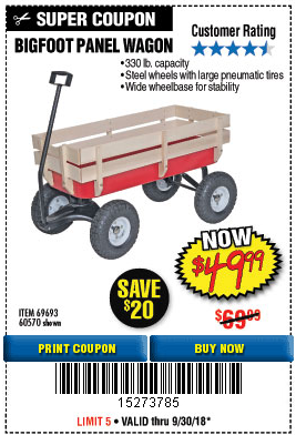 BIGFOOT PANEL WAGON Lot No. 60570/69693/62375 Expired: 9/30/18 - $49.99 Coupon Code: '15273785'