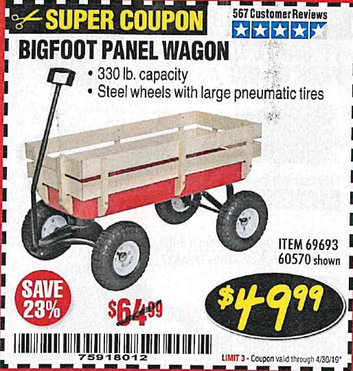 BIGFOOT PANEL WAGON Lot No. 60570/69693/62375 Expired: 4/30/19 - $49.99 Coupon Code: '75918012'