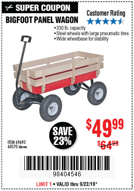 BIGFOOT PANEL WAGON Lot No. 60570/69693/62375 Expired: 9/22/19 - $49.99 Coupon Code: '65989230'
