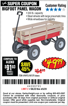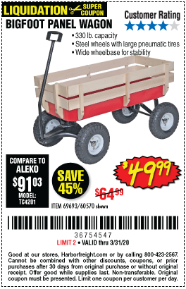 BIGFOOT PANEL WAGON Lot No. 60570/69693/62375 Expired: 3/31/20 - $54.99 Coupon Code: '58314070'