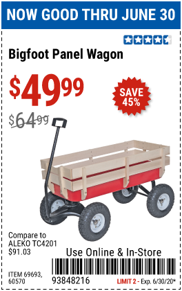 BIGFOOT PANEL WAGON Lot No. 60570/69693/62375 Expired: 6/30/20 - $49.99 Coupon Code: '44099795'