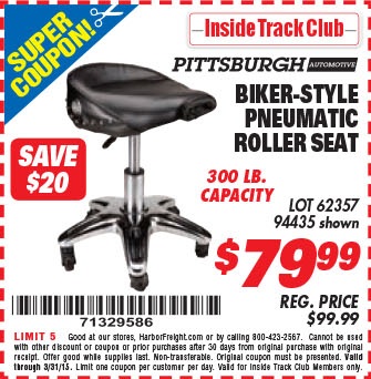 ITC BIKER-STYLE PNEUMATIC ROLLER SEAT Lot No. 62357/94435 Expired: 7/31/15 - $79.99 Coupon Code: '42368967'