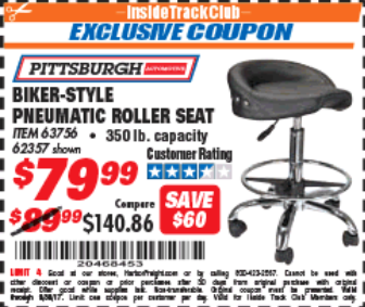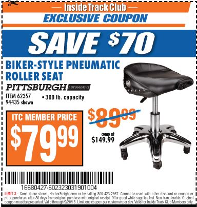 ITC BIKER-STYLE PNEUMATIC ROLLER SEAT Lot No. 62357/94435 Expired: 9/20/16 - $79.99 Coupon Code: '16680427'