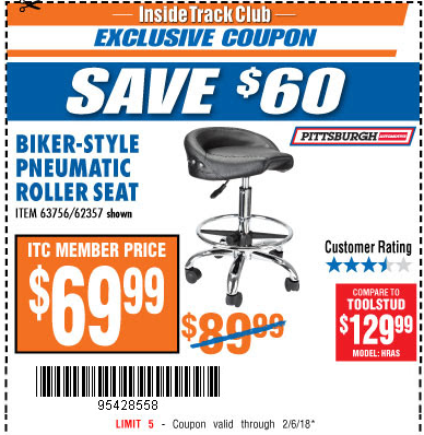 ITC BIKER-STYLE PNEUMATIC ROLLER SEAT Lot No. 62357/94435 Expired: 2/6/18 - $69.99 Coupon Code: '95428558'