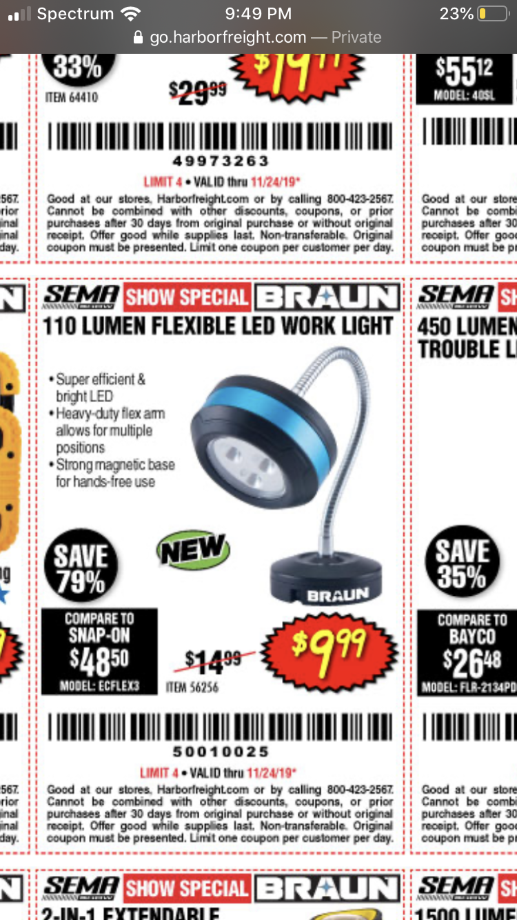 BRAUN 110 LUMEN FLEXIBLE LED WORK LIGHT Lot No. 56256 Expired: 11/24/19 - $9.99 Coupon Code: '53449879'