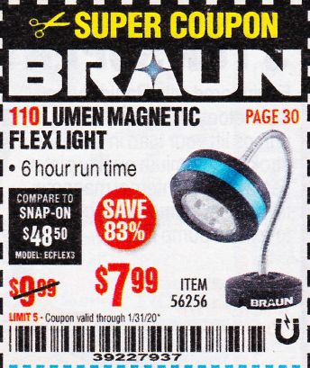 BRAUN 110 LUMEN FLEXIBLE LED WORK LIGHT Lot No. 56256 Expired: 1/31/20 - $7.99 Coupon Code: '39227937'