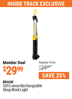 ITC BRAUN 500 LUMEN RECHARGEABLE SHOP WORK LIGHT Lot No. 57444 Expired: 7/29/21 - $29.99 Coupon Code: 'n/a'