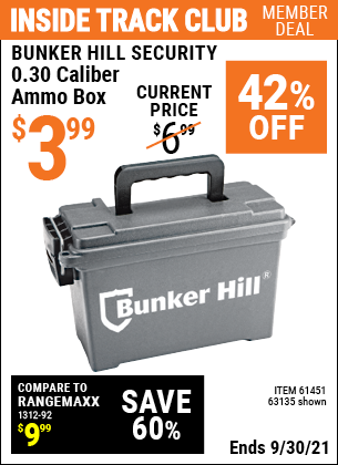 BUNKER HILL 0.30 CAL. AMMO BOX Lot No. 63135/61451 Expired: 9/24/20 - $3.49 Coupon Code: '36892535'