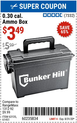 BUNKER HILL 0.30 CAL. AMMO BOX Lot No. 63135/61451 Expired: 8/5/21 - $3.99 Coupon Code: 'n/a'