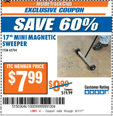 ITC CENTRAL MACHINERY 17 IN. MINI MAGNETIC SWEEPER Lot No. 62704 Expired: 8/1/17 - $7.99 Coupon Code: '51503646'