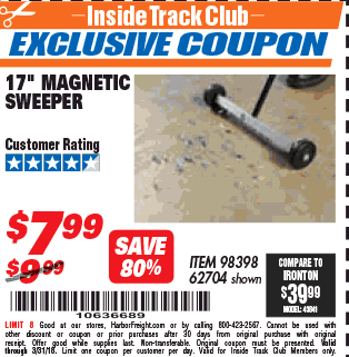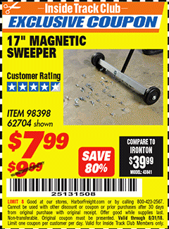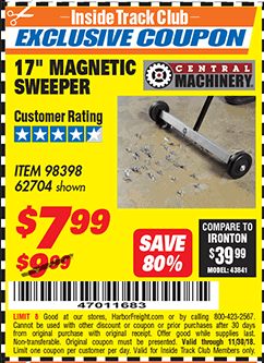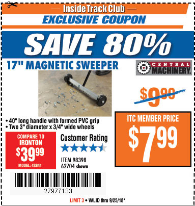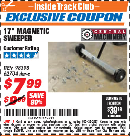 ITC CENTRAL MACHINERY 17 IN. MINI MAGNETIC SWEEPER Lot No. 62704 Expired: 11/30/17 - $7.99 Coupon Code: '602135570'