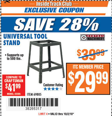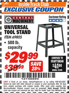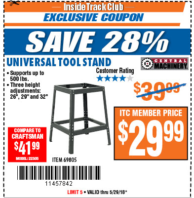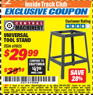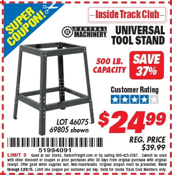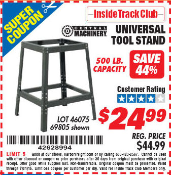 ITC CENTRAL MACHINERY UNIVERSAL TOOL STAND Lot No. 69805 Expired: 2/28/15 - $24.99 Coupon Code: '51994091'