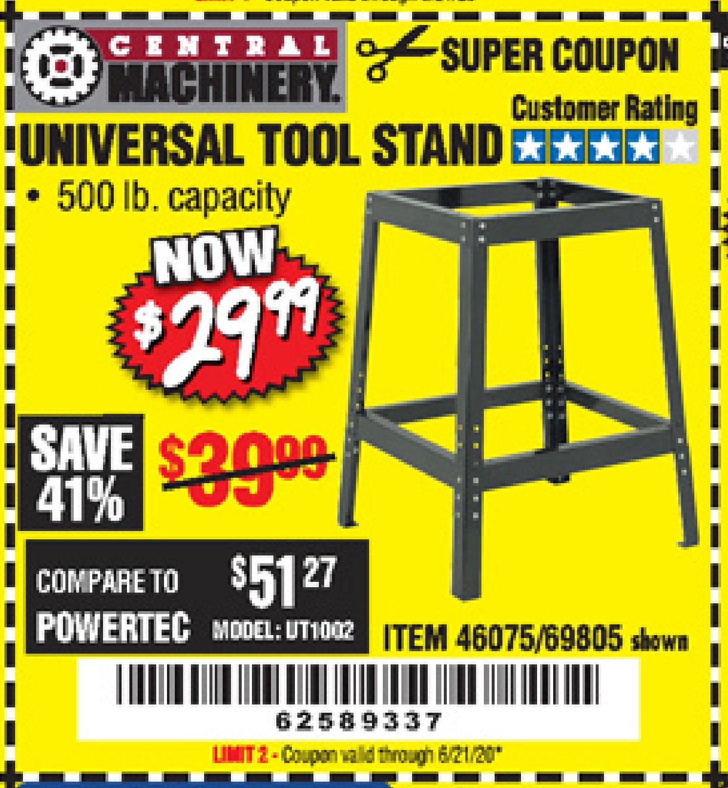 ITC CENTRAL MACHINERY UNIVERSAL TOOL STAND Lot No. 69805 Expired: 3/31/22 - $31.99 Coupon Code: 'n/a'