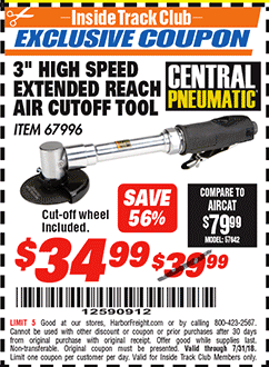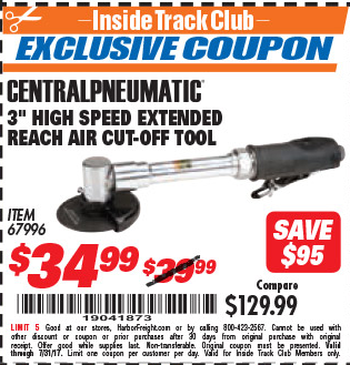 ITC CENTRAL PNEUMATIC 3 IN. HIGH SPEED EXTENDED REACH AIR CUT-OFF TOOL Lot No. 67996 Expired: 7/31/17 - $34.99 Coupon Code: '19041873'