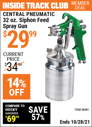 Harbor Freight ITC Coupon CENTRAL PNEUMATIC 32 OZ. SIPHON-FEED SPRAY GUN Lot No. 56981 Expired: 8/26/21 - $27.99 ITC CENTRAL PNEUMATIC 32 OZ. SIPHON-FEED SPRAY GUN Lot No. 56981 Expired: 8/26/21 - $27.99 Coupon Code: 'n/a'