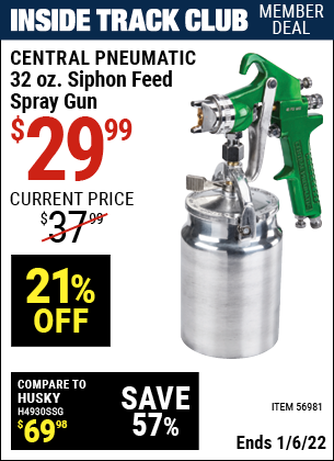 Harbor Freight ITC Coupon CENTRAL PNEUMATIC 32 OZ. SIPHON-FEED SPRAY GUN Lot No. 56981 Expired: 1/6/22 - $29.99 ITC CENTRAL PNEUMATIC 32 OZ. SIPHON-FEED SPRAY GUN Lot No. 56981 Expired: 1/6/22 - $29.99 Coupon Code: 'n/a'