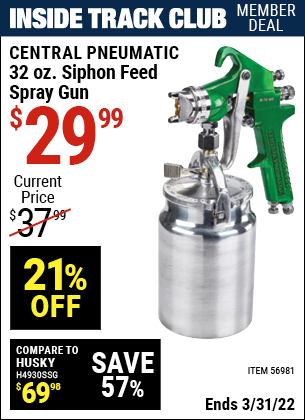 Harbor Freight ITC Coupon CENTRAL PNEUMATIC 32 OZ. SIPHON-FEED SPRAY GUN Lot No. 56981 Expired: 3/31/22 - $29.99 ITC CENTRAL PNEUMATIC 32 OZ. SIPHON-FEED SPRAY GUN Lot No. 56981 Expired: 3/31/22 - $29.99 Coupon Code: 'n/a'