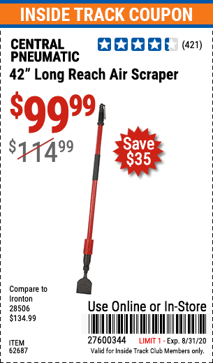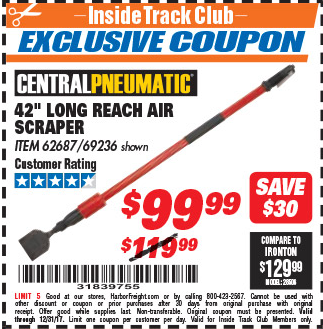 ITC CENTRAL PNEUMATIC 42 IN. LONG REACH AIR SCRAPER Lot No. 62687 Expired: 7/31/18 - $99.99 Coupon Code: '12479476'