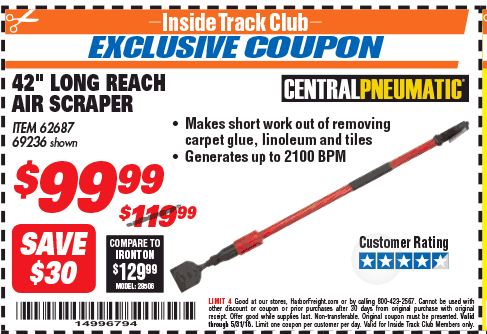 ITC CENTRAL PNEUMATIC 42 IN. LONG REACH AIR SCRAPER Lot No. 62687 Expired: 7/31/17 - $99.99 Coupon Code: '37189676'