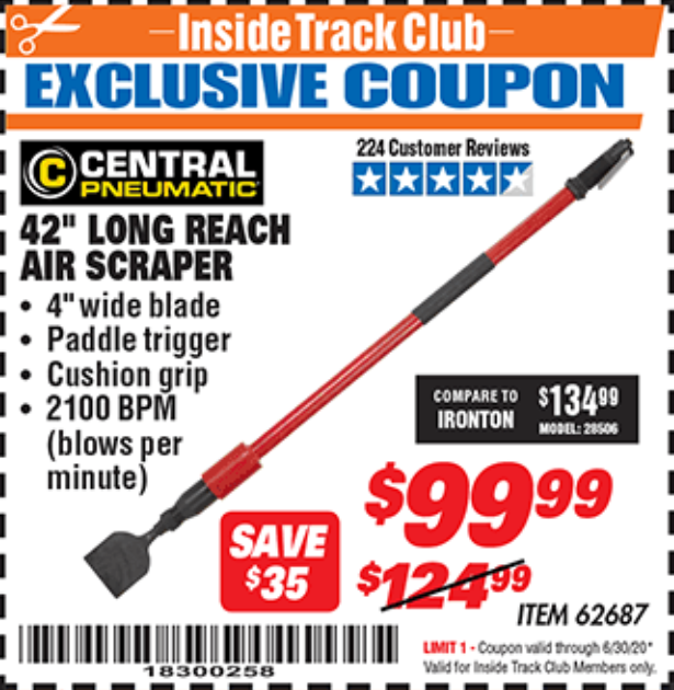 ITC CENTRAL PNEUMATIC 42 IN. LONG REACH AIR SCRAPER Lot No. 62687 Expired: 2/11/20 - $99.99 Coupon Code: '50986033'