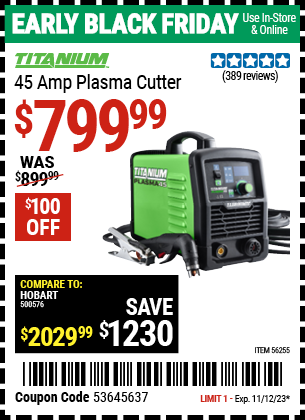 CHICAGO ELECTRIC 20 AMP PLASMA CUTTER Lot No. 58605 Expired: 11/8/23 - $799.99 Coupon Code: '53645637'