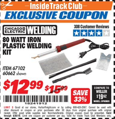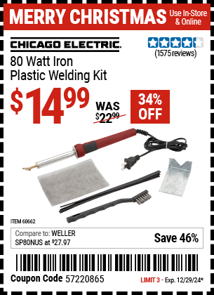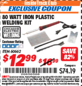 ITC CHICAGO ELECTRIC 80 WATT IRON PLASTIC WELDING KIT Lot No. 60662 Expired: 5/31/15 - $12.99 Coupon Code: '21539077'