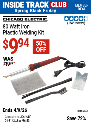 ITC CHICAGO ELECTRIC 80 WATT IRON PLASTIC WELDING KIT Lot No. 60662 Expired: 4/9/26 - $9.94 Coupon Code: 'n/a'