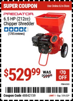 CHIPPER/SHREDDER WITH 6.5 HP GAS ENGINE Lot No. 62323 Expired: 7/31/22 - $529.99 Coupon Code: '48842159'
