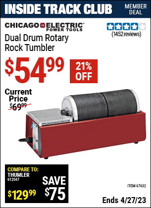 ITC DUAL DRUM ROTARY ROCK TUMBLER Lot No. 67632 Expired: 4/27/23 - $54.99 Coupon Code: 'n/a'