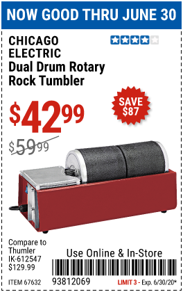 DUAL DRUM ROTARY ROCK TUMBLER Lot No. 67632 Expired: 6/30/20 - $42.99 Coupon Code: '93812069'