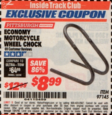 ITC ECONOMY MOTORCYCLE WHEEL CHOCK Lot No. 97145 Expired: 7/31/19 - $8.99 Coupon Code: '64115459'