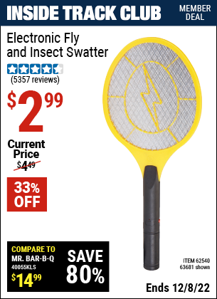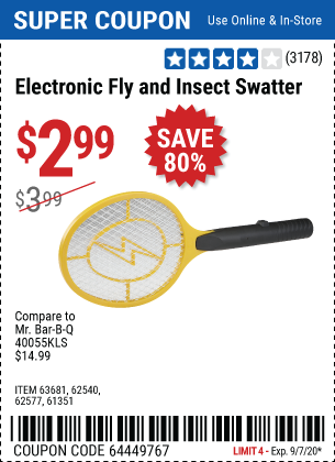 ELECTRIC FLY & INSECT SWATTER Lot No. 63681/40122/61351/62540/62577 Expired: 9/7/20 - $2.99 Coupon Code: '64449767'