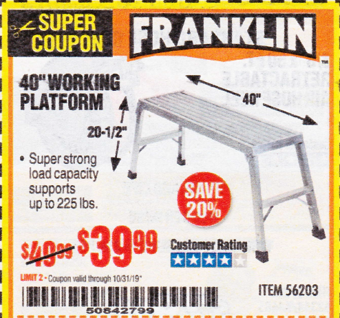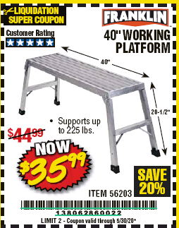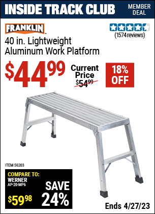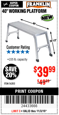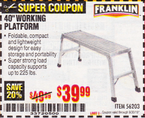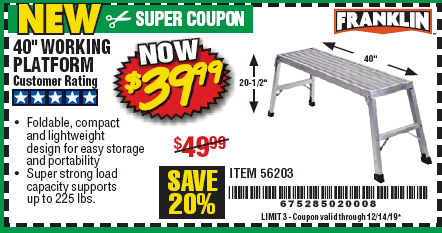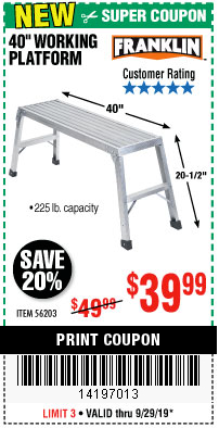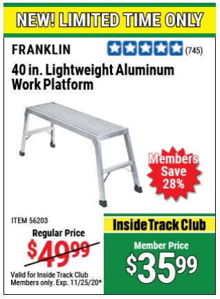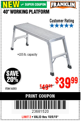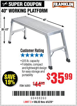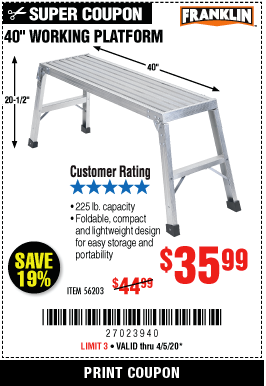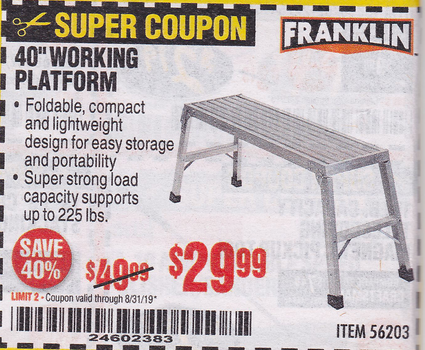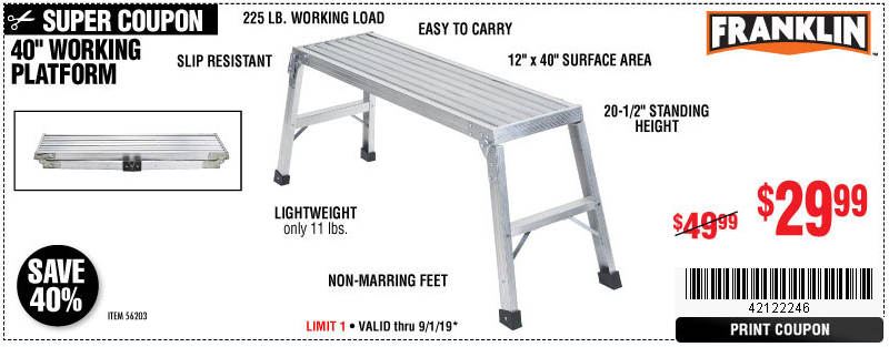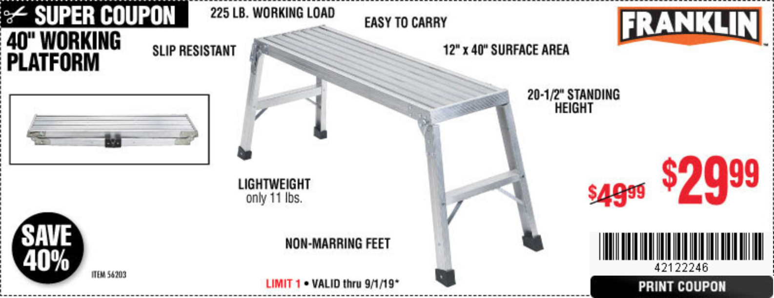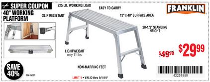 FRANKLIN 40 IN. LIGHTWEIGHT ALUMINUM WORK PLATFORM Lot No. 56203 Expired: 9/30/19 - $39.99 Coupon Code: '33720500'