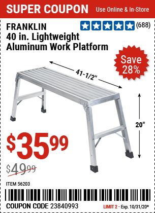 FRANKLIN 40 IN. LIGHTWEIGHT ALUMINUM WORK PLATFORM Lot No. 56203 Expired: 10/31/20 - $35.99 Coupon Code: '23840993'