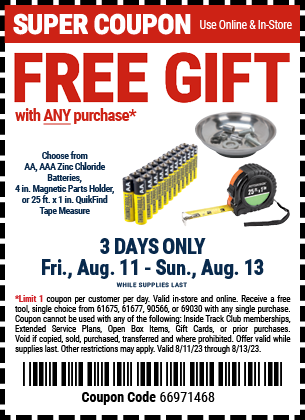 FREE FREE GIFT WITH ANY PURCHASE Lot No. 61675/61677/90566/69030 Expired: 8/13/23 - FWP Coupon Code: '66971468'