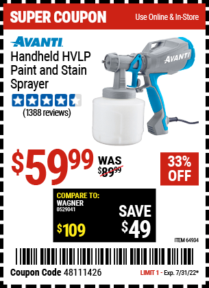 HANDHELD HELP PAINT AND STAIN SPRAYER Lot No. 64934 Expired: 1/6/22 - $59.99 Coupon Code: '48111426'