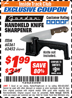 HANDHELD KNIFE SHARPENER Lot No. 60361/62452 Expired: 7/31/19 - $1.5 Coupon Code: '28173182'