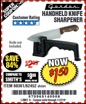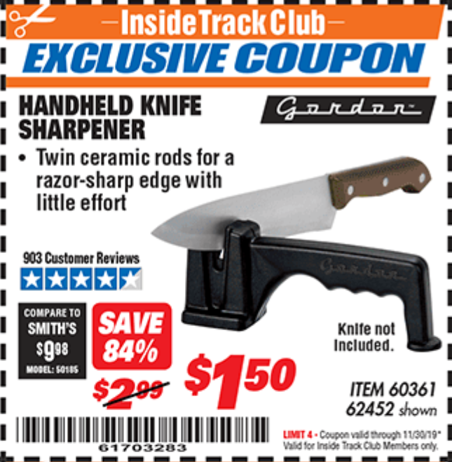 HANDHELD KNIFE SHARPENER Lot No. 60361/62452 Expired: 11/30/19 - $1.5 Coupon Code: '39288538'