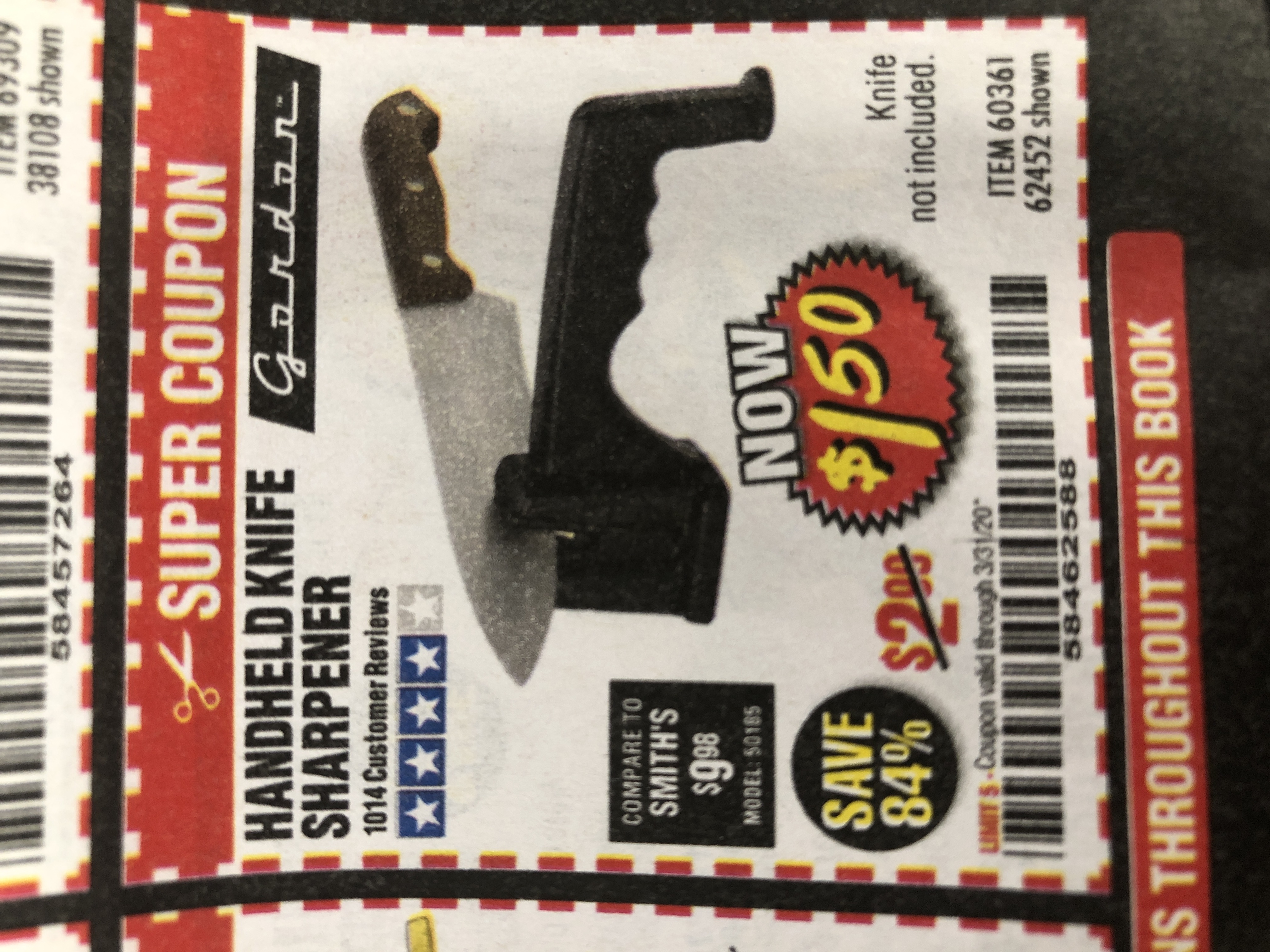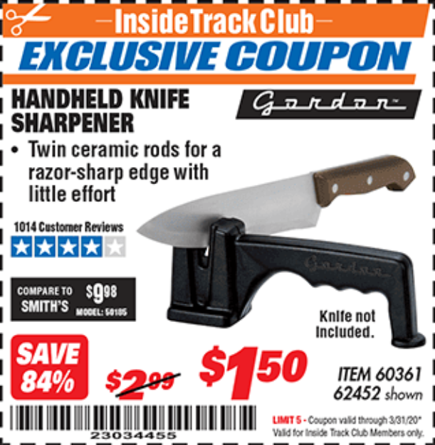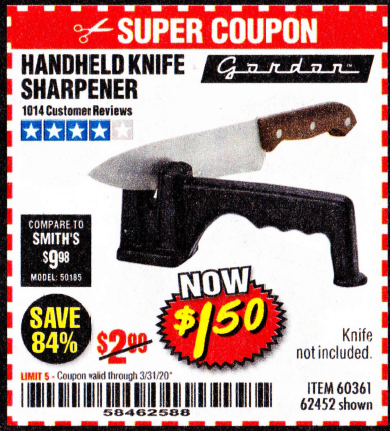 HANDHELD KNIFE SHARPENER Lot No. 60361/62452 Expired: 3/31/20 - $1.5 Coupon Code: '58462588'