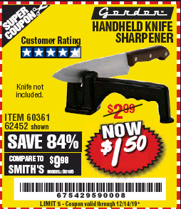 HANDHELD KNIFE SHARPENER Lot No. 60361/62452 Expired: 12/14/19 - $1.5 Coupon Code: '67542959'
