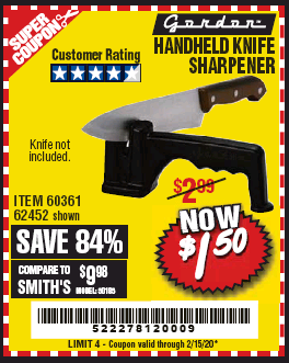 HANDHELD KNIFE SHARPENER Lot No. 60361/62452 Expired: 2/15/20 - $1.5 Coupon Code: '52227812'